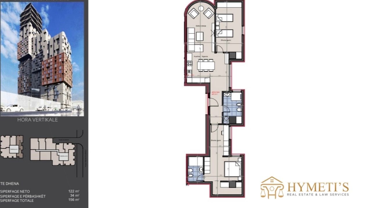 Në projektin e ri rezidencial te sapo nisur në Rrugën Muhamet Gjollesha ofrohet për shitje një apartament i bollshëm 2+1, i pozicionuar në katin e 16 të godinës. Me një sipërfaqe totale prej 156 m², apartamenti ofron ambiente shumë komode, planimetri funksionale dhe ndriçim të shkëlqyer natyral.