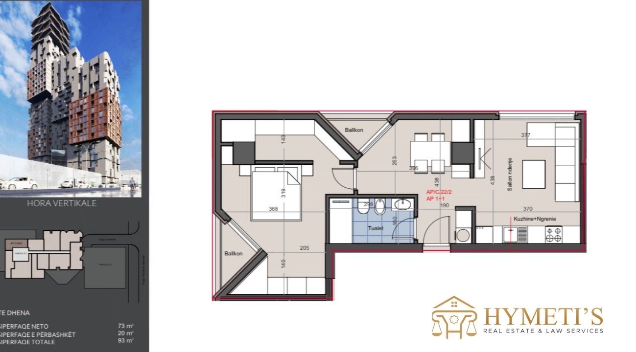 Në projektin modern rezidencial në Rrugën Muhamet Gjollesha, që sapо ka nisur ndërtimi, ofrohet një apartament i bukur 1+1, i pozicionuar në kati i 22-të të godinës. Me një sipërfaqe prej 93 m², apartamenti ofron hapësira komode, planimetri funksionale dhe ndriçim të bollshëm natyral.